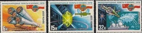 1978. Международные космические полеты (ПНР). № 4839 - 4841о. Серия марок