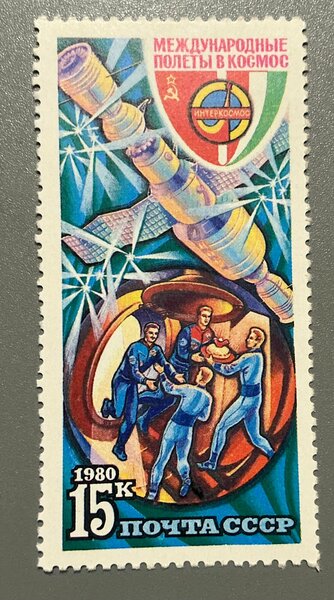 15 копеек 1980 "Международные полеты в космос: Встреча международного экипажа на борту станции "Салют-6" хлебом-солью" стоимость