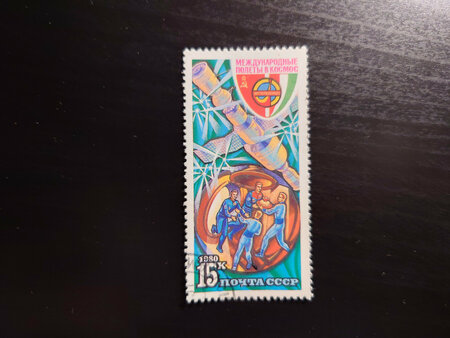 Файл:The Soviet Union 1980 CPA 5083 stamp (Soviet-Hungarian Space Flight. Crew meeting on Salyut 6 space station).jpg - Википеди