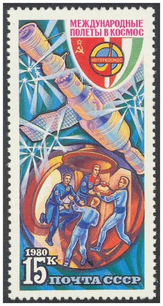 1980-052) Марка СССР "В. Н. Кубасов и Б. Фаркаш на Салют-6" Полет в космос пятого международного э - купить в интернет-магазине