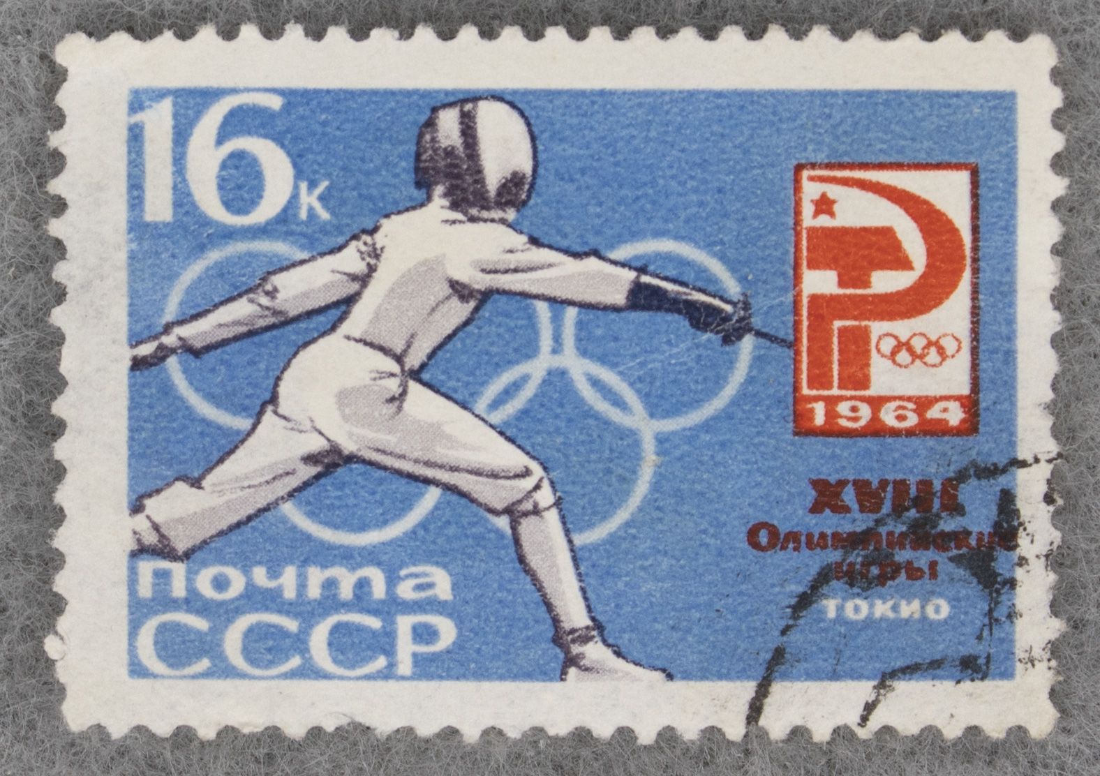 СССР, 1964 г. спорт, XVIII летние ОИ в Токио, номинал 16 коп, зубцовая