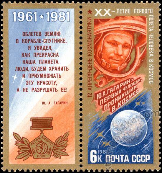 1981 5174 Ю.А. Гагарин - первый человек проникший в космос 6к