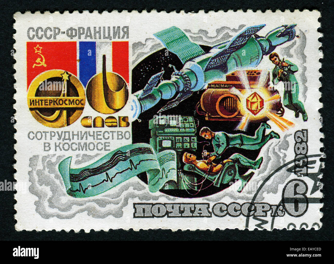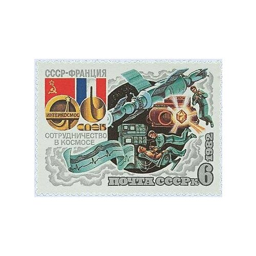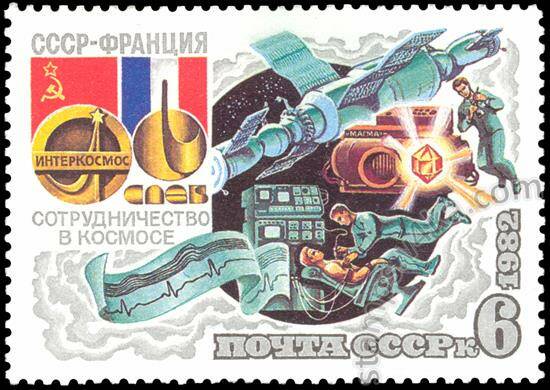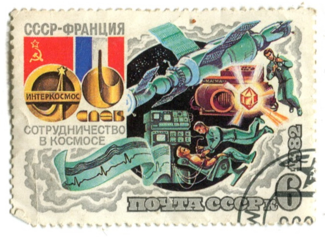 Марка СССР, посвященная международной космической программе (Советский Союз и Франция) в космосе