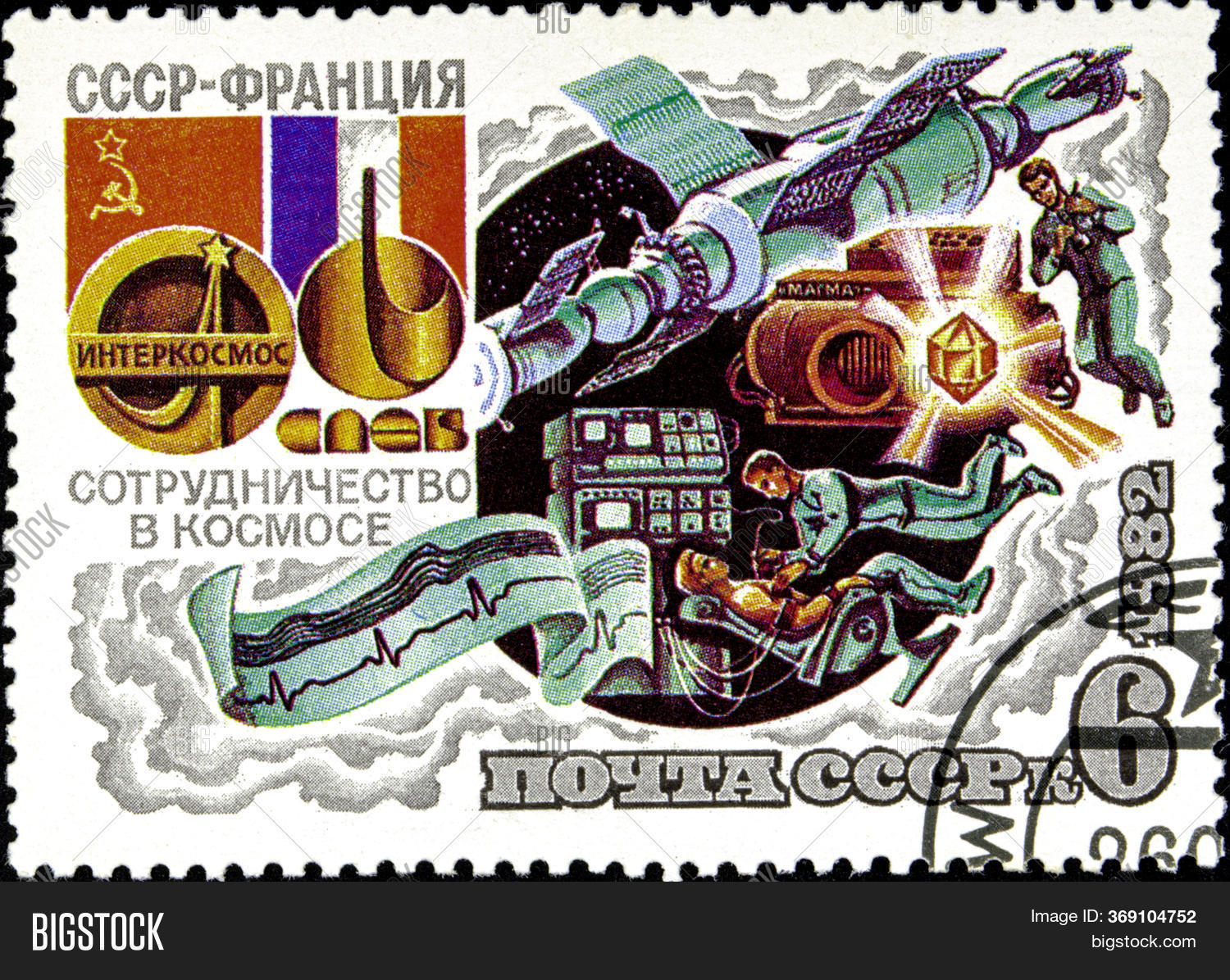 Марка СССР, посвященная международной космической программе (Советский Союз и Франция) в космосе. Стоковое фото № 5720994, фотог