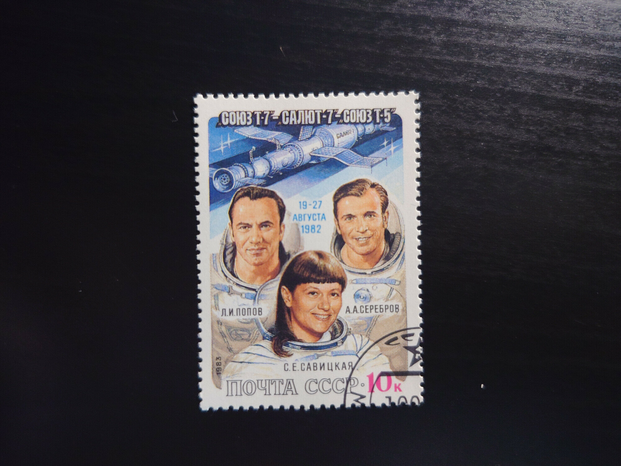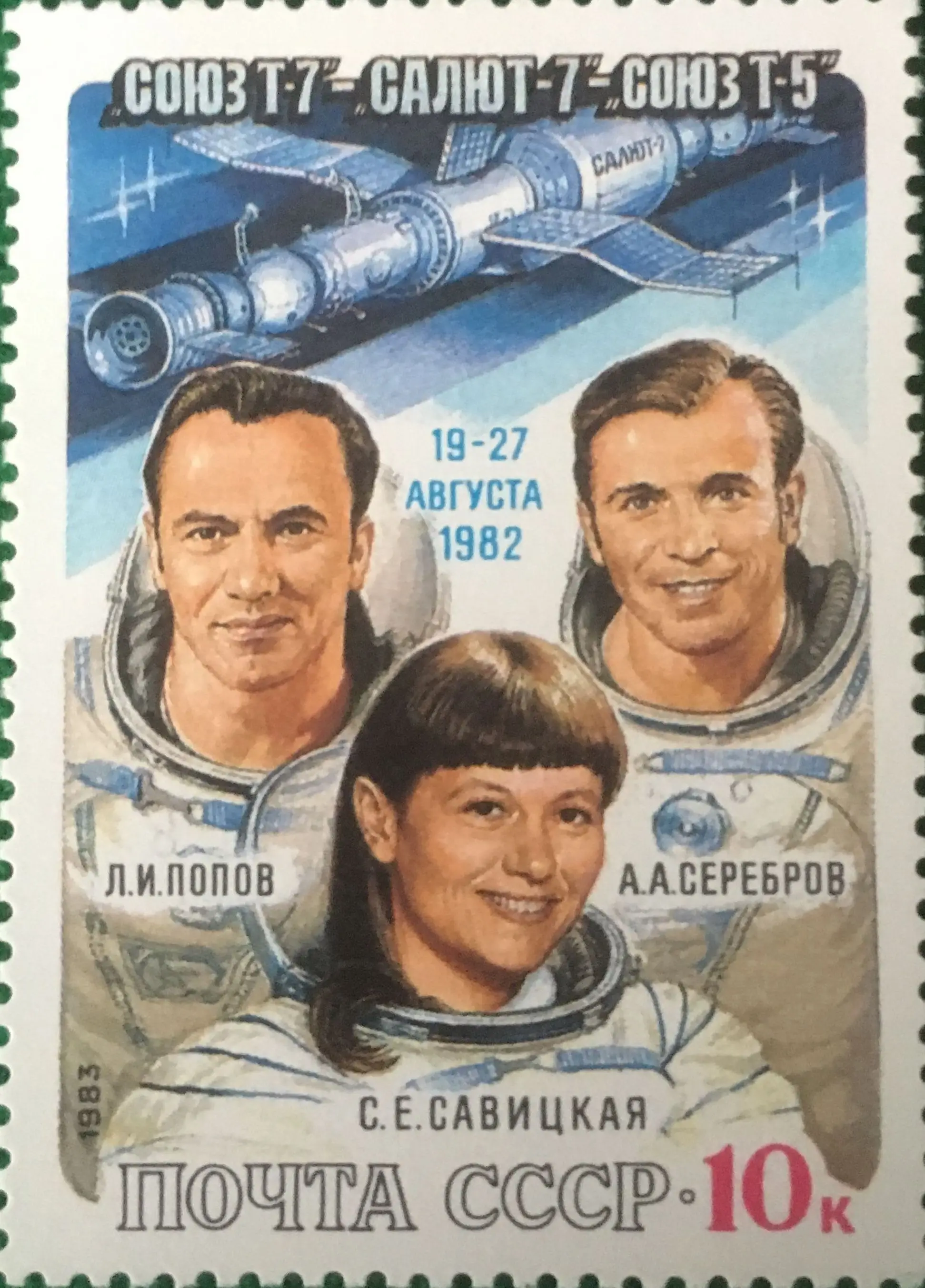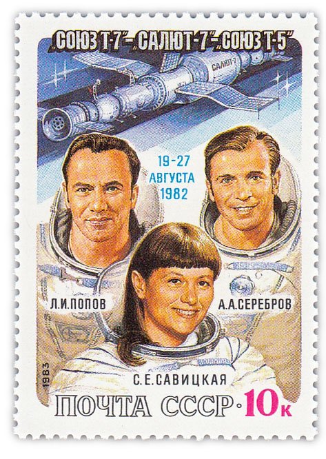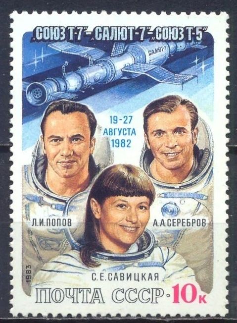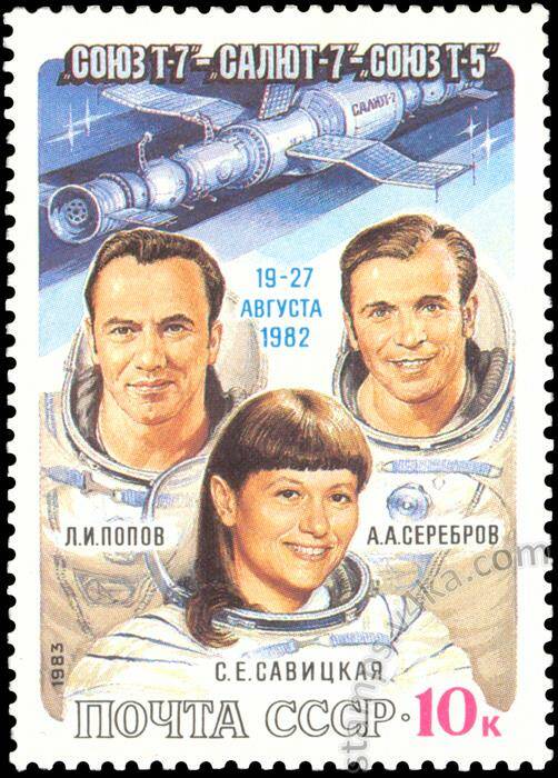 Марка Космический полет "Союз Т-7" - "Салют-7" - "Союз Т-5", СССР, 1982 год