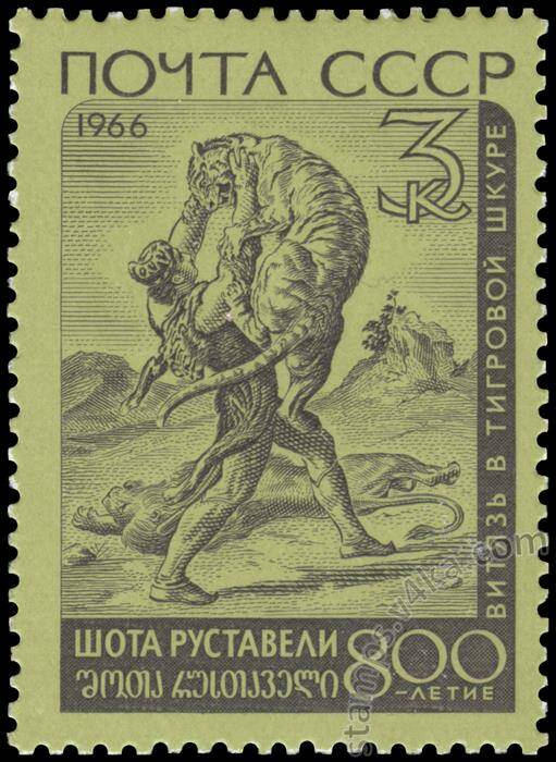 с, поэме", стоимость, поэты, купить, единоборство, магазин, 1966, тариэла, иллюстрация, в, витязь, тигрицей, марки, коллекция, шкуре, тигровой, ссср, 3308, марок, филателия, ", почтовые, к