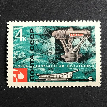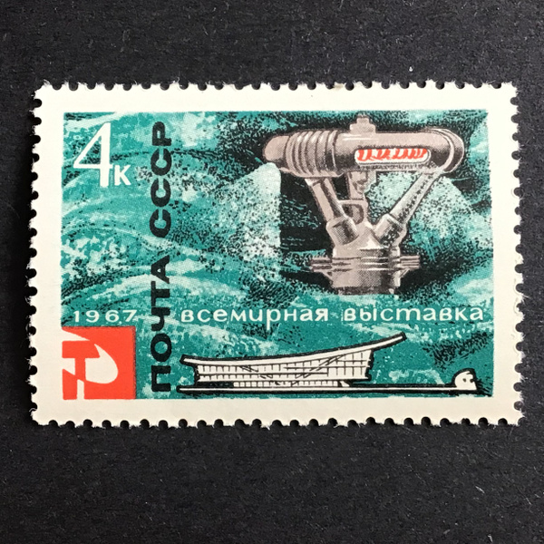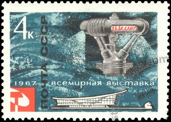 Файл:The Soviet Union 1967 CPA 3458 stamp (Sea Water Converter. Emblem and Pavilion at Expo '67) large resolution.jpg - Википеди