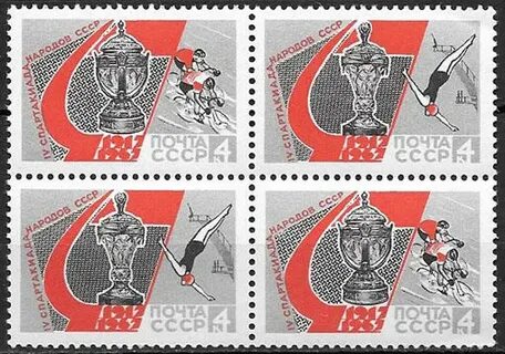 СССР 1967 год. Спартакиада народов СССР, 2 сцепки по 4 марки