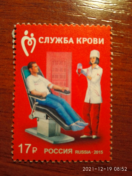 Купить марки 2015. Государственная программа развития добровольного донорства "Служба крови", 1938о, марка по низкой цене с дост
