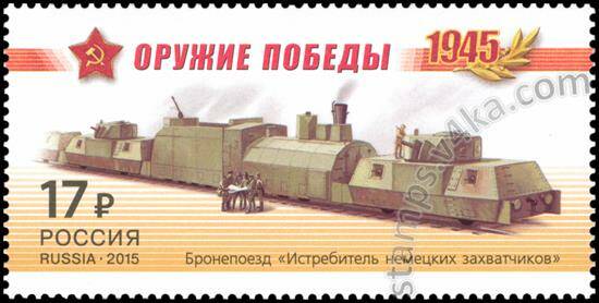 Почтовые марки россия 2015г. "К 70-летию Победы в Великой Отечественной войне. 1941-1945 гг. БронеПоезда" Оружие, Поезда MNH - к