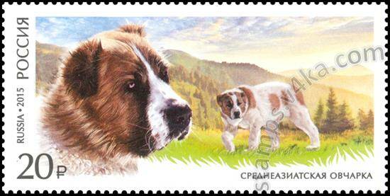 2015-048 Марка Россия Среднеазиатская овчарка Тобет Фауна России.