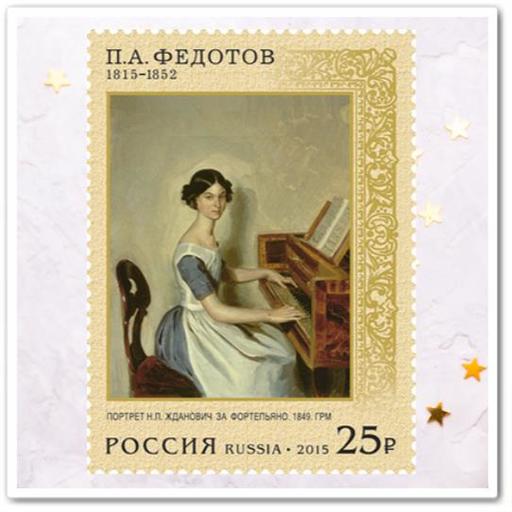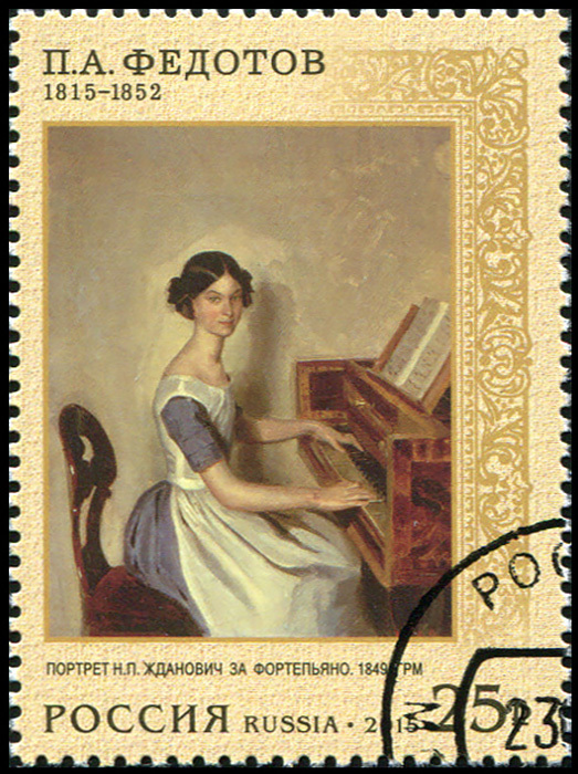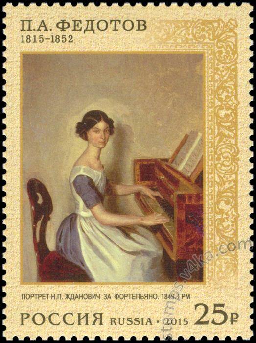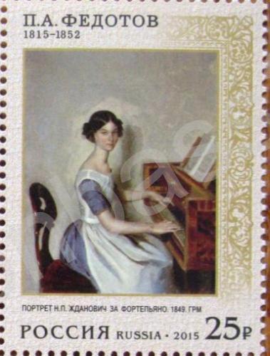 Postage stamp - P. A. Fedotov (1815 - 1852). Portrait Of N. P. Zhdanovich at the piano 2015 - Russian Federation
