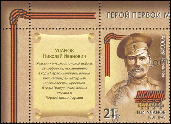 Россия. Герои Первой мировой войны. Серия из 4 марок с купонами