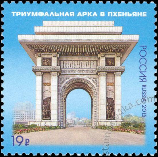 Россия 2015 АРХИТЕКТУРА ТРИУМФАЛЬНАЯ АРКА ПХЕНЬЯН ВЫПУСК РОССИЯ-КНДР СК 1991 MNH OG