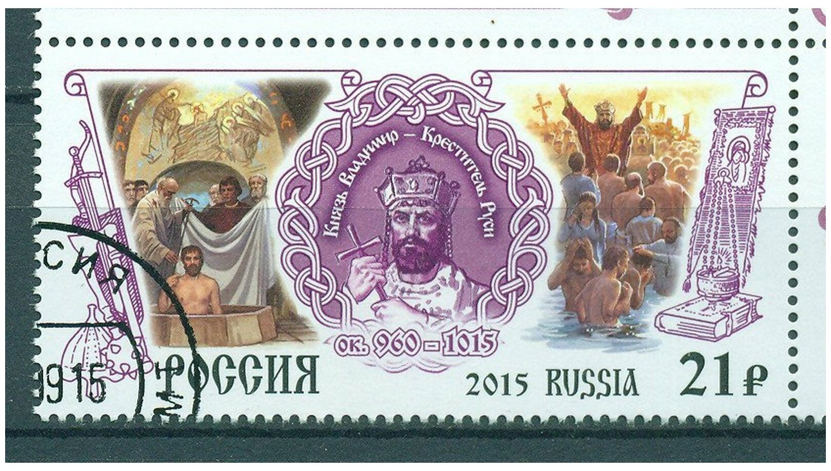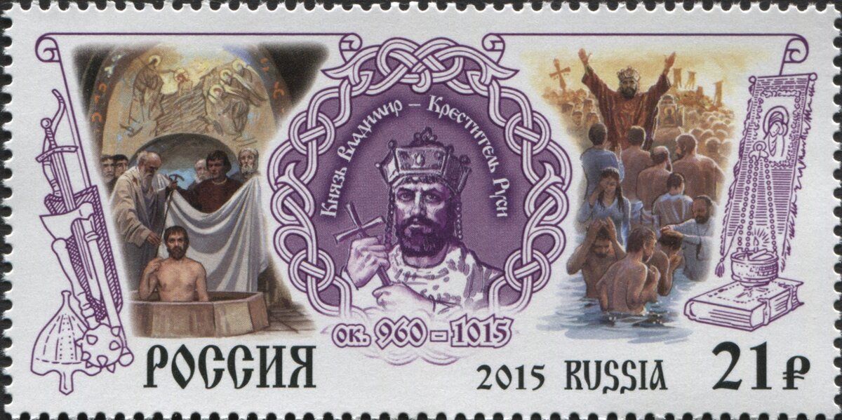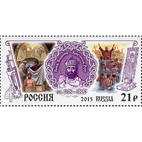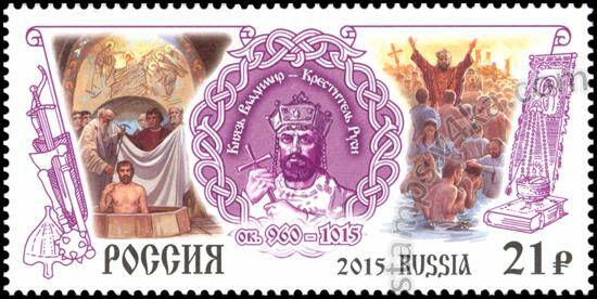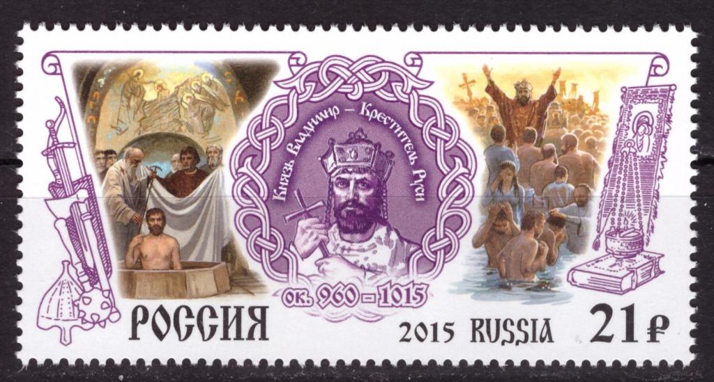 Святой князь Владимир - Креститель Руси, почтовая марка, 2015г.