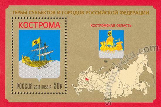 № 2023 Марка Почтовый блок Гербы Субъектов и городов РФ. Кострома и Костромская область 2015г. купить на OZON по низкой цене в А