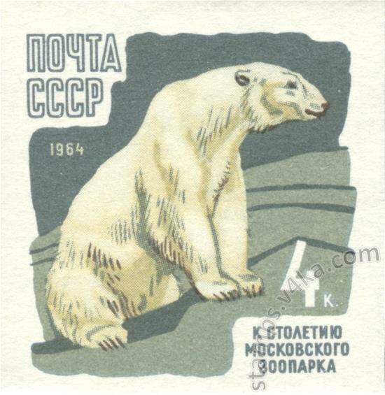 Файл:The Soviet Union 1964 CPA 3043 stamp (Centenary of Moscow Zoo. Polar bear or white bear (Ursus maritimus)).jpg - Википедия