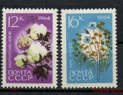 СССР 1964 Флора Сельскохозяйственные культуры СССР Хлопок Лён н/с 2 марки (К049)