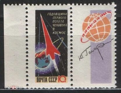 Дёшево. СССР.1962.2674.Годовщина полёта Ю.А.Гагарина. 10 к. Купон-сиреневый. Поле слева.