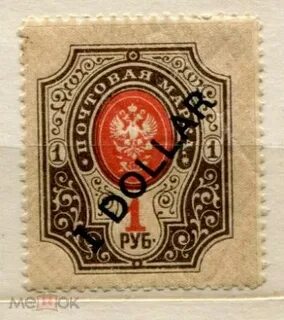 Почтовая марка 1 рубль 1908-17 лин. 13 1/4 Надпечатка "1 DOLLAR"
