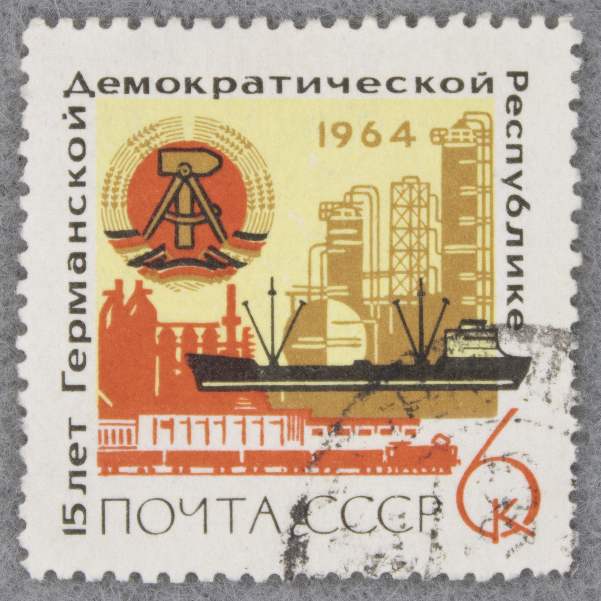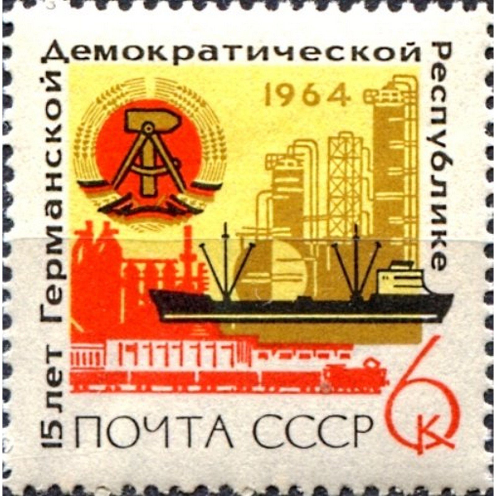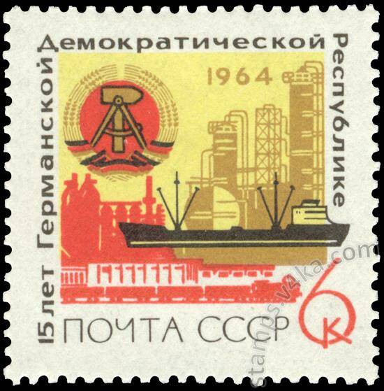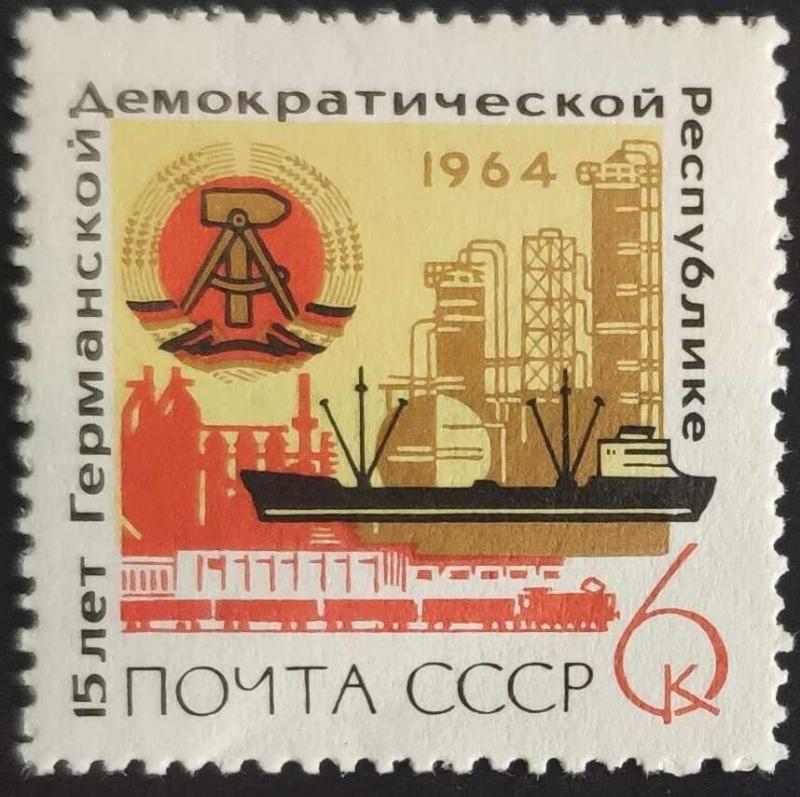 СССР,1964,ГДР,Герб,герб,корабли,Индустриальный пейзаж,Почтовые марки СССР,советы,Почтовые марки,филателия,Германия,Германская Демократическая Республика,коллекционирование,чистые марки,чистая,советские монеты