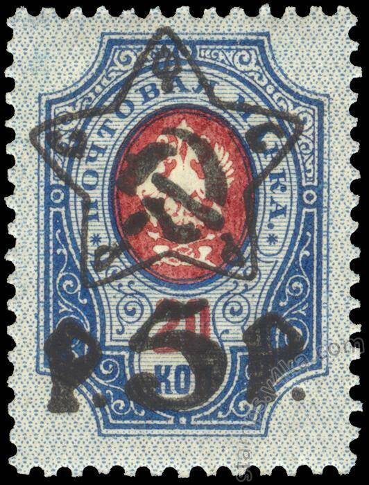 Почтовые марки РСФСР. 1922. Надпечатка звезды и номинала на марке царского образца. 1 из 5-ти.