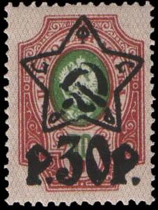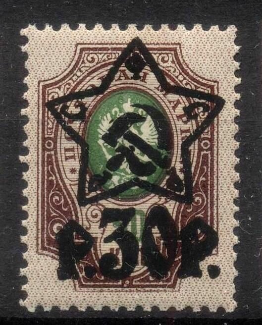 1922 г. "Надпечатка 30 руб. на марке царского стандарта" Чистая