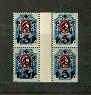 1922 РСФСР Стандарт Надпечатка звезды 5/20 СК 74 Сол 60А Перфорация / ЛИТО_ГАТТЕР-КВАРТБЛОК! MNH