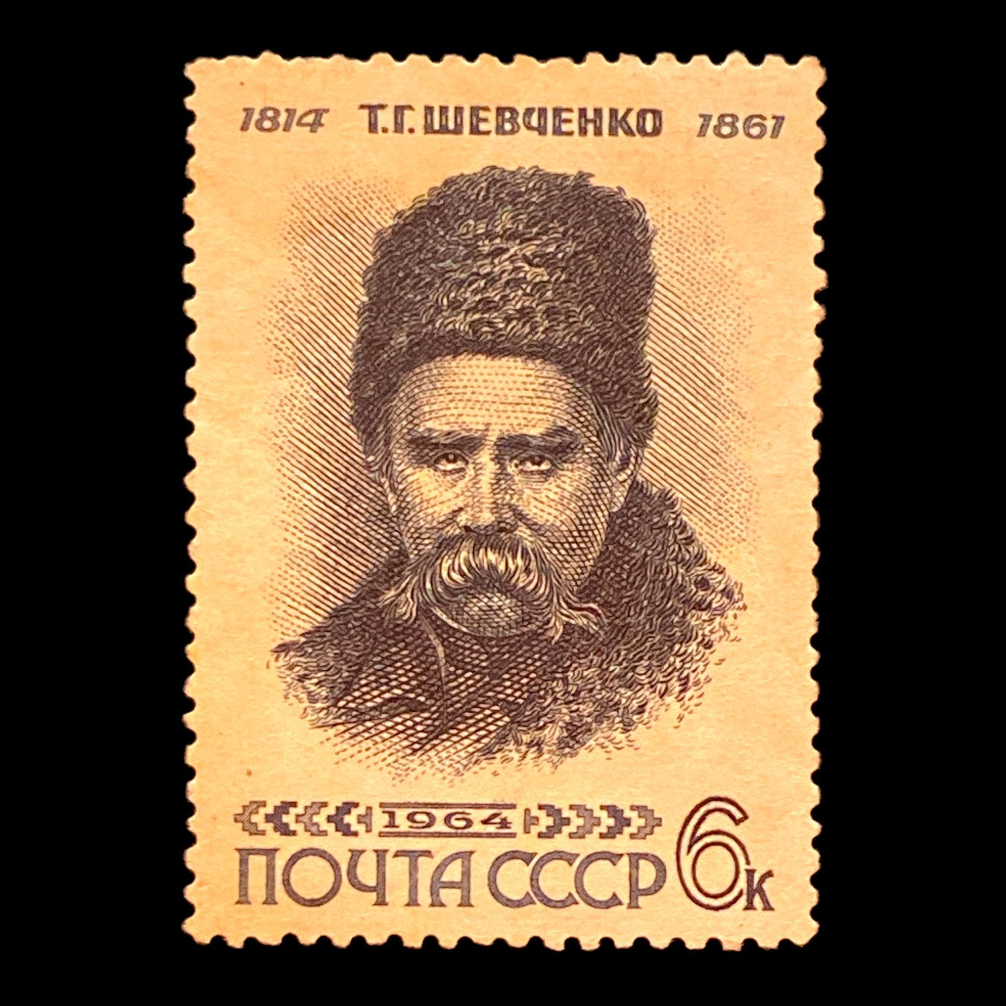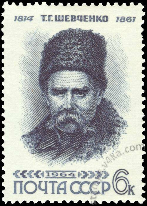 1964-023 Марка СССР Портрет (Красная) Т.Г. Шевченко 150 лет со дня рождения III Θ, купить