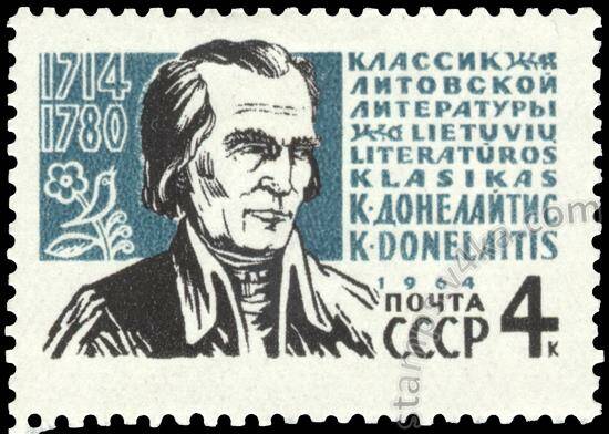 СССР 1964 год 250 лет со дня рождения литовского поэта Кристионаса Донелайтиса Чист