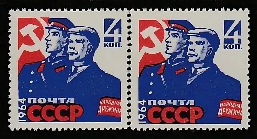 СССР 1964 год. Охрана общественного порядка. Разновидность - на правой марке сдвиг красной краски, 2 марки (2922) (К