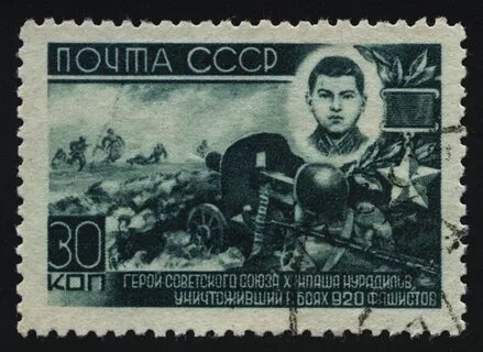 1944. Герои Великой Отечественной войны 1941-1945 гг. Пулеметчик гвардии сержант Х. Нурадинов. 30 к.