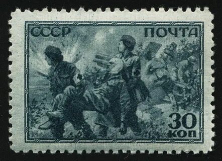 1943. Великая Отечественная война 1941-1945 гг. Вынос раненых с поля боя. 30 к.