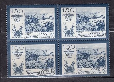 СССР 1962 г. • Сол# 2738 • 150-летие Отечественной войны 1812 года • кв.блок • MNH OG XF
