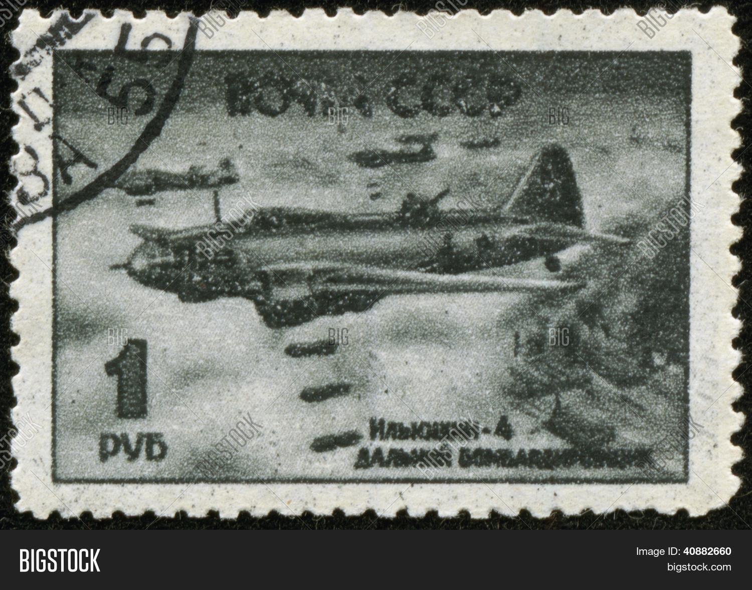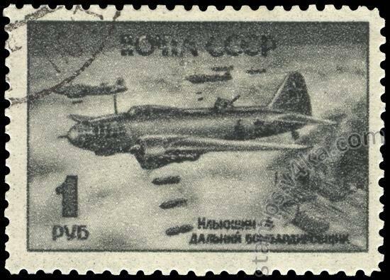 Советская почтовая марка с самолетом Ил-4 на черном фоне (1945 г.) Стоковая иллюстрация № 2425254, иллюстратор Алексей Голубенко