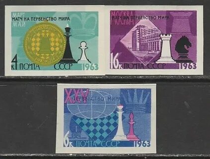 СССР 1963 год. XXV первенство мира по шахматам в Москве, 3 БЕззубцовые марки