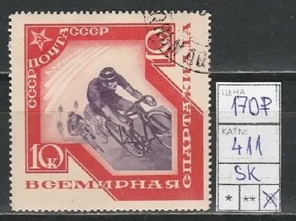СССР 1935 год, Спартакиада, Велосипед, 1 гашёная марка
