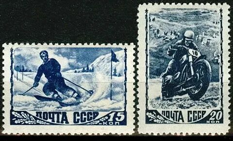 СССР 1948 г. № 1243-1244. Спорт(1 выпуск). Слалом. Мотокросс. Серия из 2 марок. MNH(**)