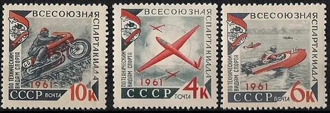 3 почтовые марки «Всесоюзная спартакиада по техническим видам спорта» СССР 1961