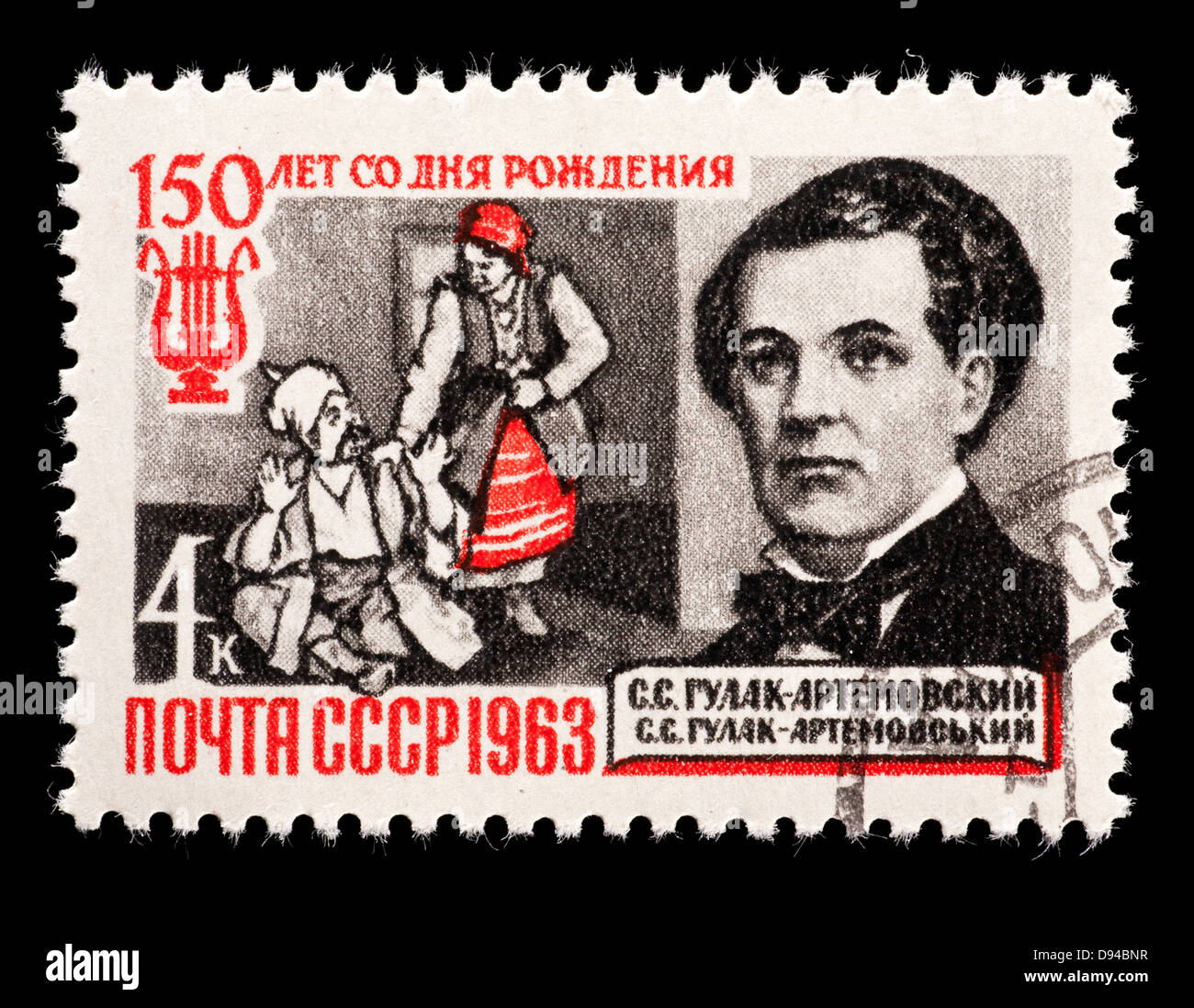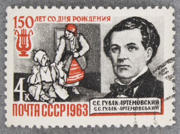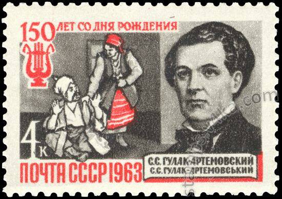 Почтовая марка "150 лет со дня рождения С. С. Гулак-Артемовского (1813-1873)". Номинал 4 коп. СССР. 1963 год. (Загорский 2819) к