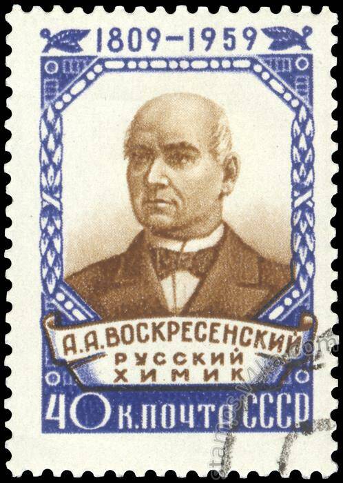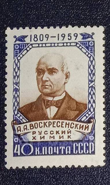 СССР 1959 "150 лет со дня рождения химика-органика А.А.Воскресенского (1809 - 1880 гг.)" Марка.
