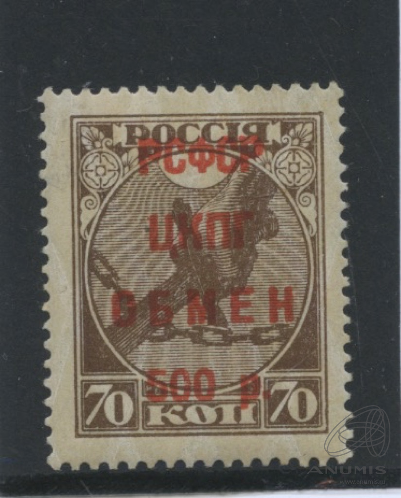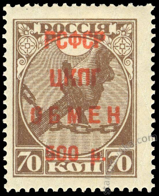 Негашёная марка филателистического обмена "500 рублей" цельный клеевой слой, след от наклейки 1922. СССР. Лот № 4819. Аукцион №