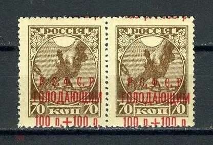 1922г РСФСР голодающим сдвиг надпечатки пара **