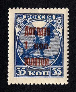1924. Вспомогательный выпуск. Надпечатка на марке РСФСР 1. 1 к./35 к.