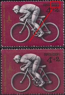СССР 1965 год. Велоспорт (ном. 4к). Разновидность - разный цвет