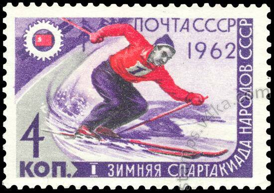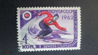 СССР 1962. Зимняя спартакиада. Слалом. 4 коп. Гашёная СТО с клеем