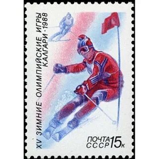 1988 5907** XV зимние Олимпийские игры в Калгари (Канада) Слалом (1 марка из серии)