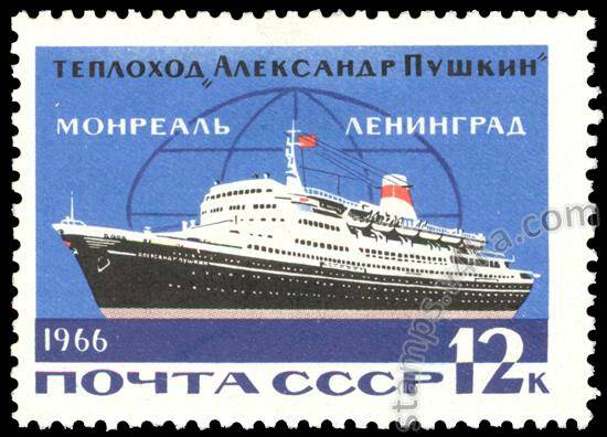 СССР 1966. Теплоход Александр Пушкин. Монреаль - Ленинград. Купить в Минске - Марки Ay.by. Лот 5039299587