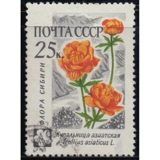 1960, ноябрь. Почтовая марка СССР. Флора СССР. 25 коп. Купальница азиатская