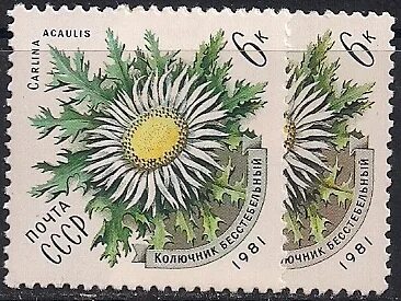 СССР 1981 год. Цветы. Бесстебельный колючник (ном. 6к). Разновидность - разный цвет